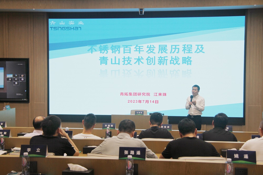 7月14日晚,青拓集團(tuán)研究院院長(zhǎng)江來(lái)珠,作為首位青山學(xué)苑企業(yè)內(nèi)部榮譽(yù)講師,應(yīng)邀為MINI EMBA精英A班與新能源班的全體學(xué)員開(kāi)設(shè)《不銹鋼百年發(fā)展歷程及青山技術(shù)創(chuàng)新戰(zhàn)略》專題講座。