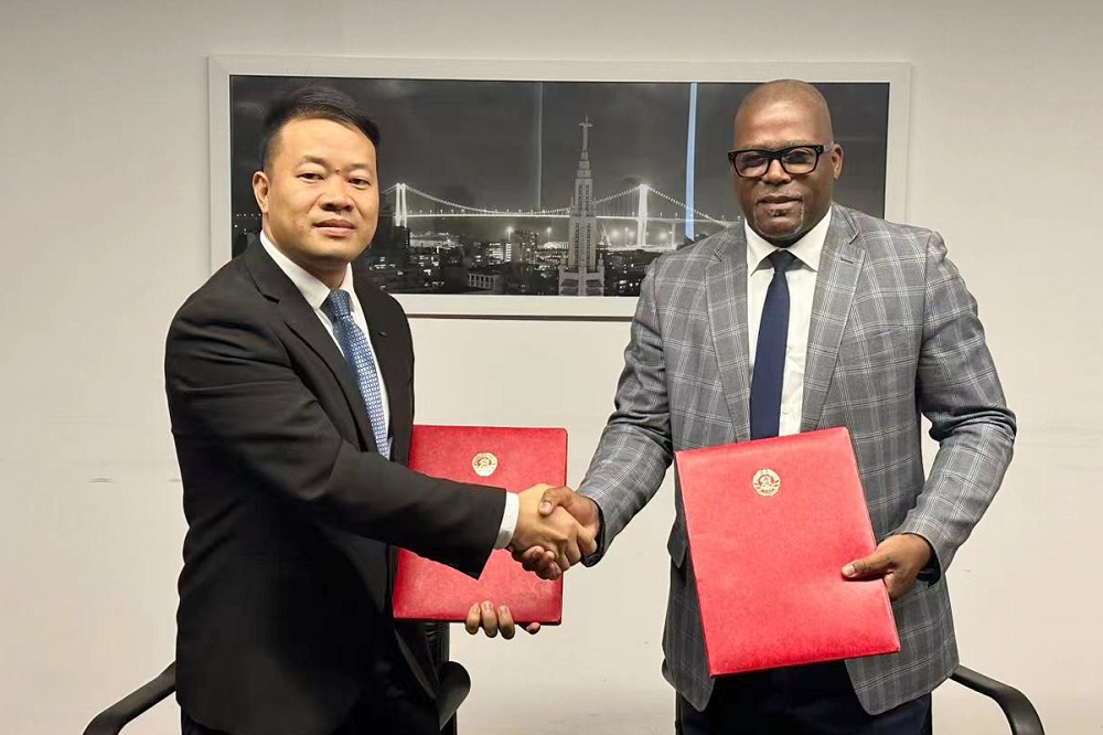 莫桑比克綠色產(chǎn)業(yè)園負(fù)責(zé)人孫建強(qiáng)與工貿(mào)部常務(wù)秘書偌熱?扎伊渃斯簽署
