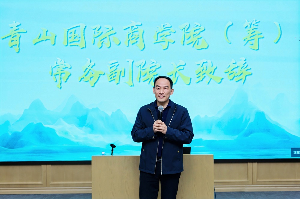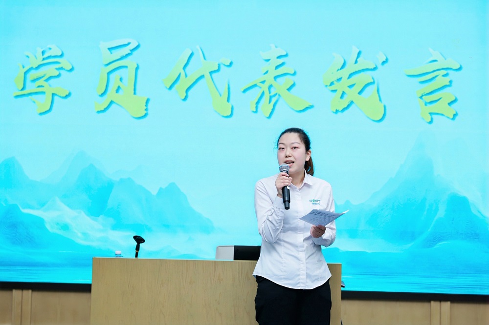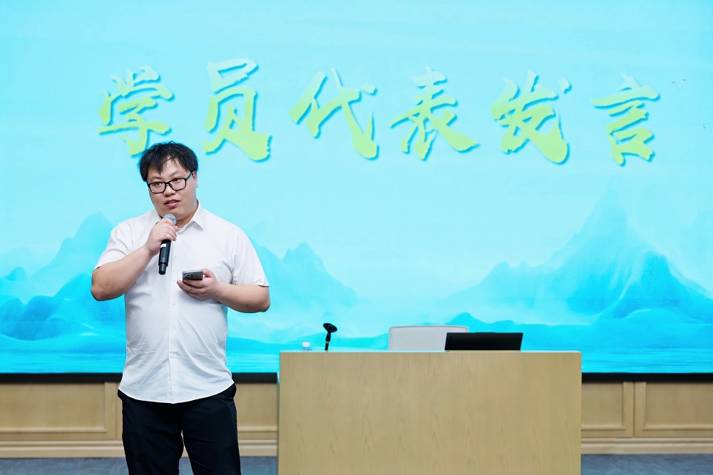 夏金水代表班委會發(fā)言,對青山實業(yè)和青山國際商學(xué)院(籌)為大家提供的賦能培訓(xùn)機(jī)會表示感謝。他表示,班委會在班級服務(wù)過程中,深切感受到同學(xué)們對于學(xué)習(xí)的真摯與熱情,也對“讓人的價值被看見”有了更深的理解。面對靈活用工的浪潮、人機(jī)協(xié)同的挑戰(zhàn),未來將進(jìn)一步以創(chuàng)新破局、用專業(yè)護(hù)航,共同構(gòu)筑青山人才生態(tài)。