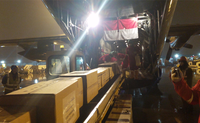 3月21日,印尼駐北京大使館、印尼駐上海領(lǐng)事館派出工作人員和青山慈善基金會工作人員一起前往上海浦東機(jī)場協(xié)調(diào)通關(guān)事宜。印尼派出C-130型大力神飛機(jī),于22時(shí)20分抵達(dá)上海浦東機(jī)場,裝載了40立方米的物資,于22日凌晨0時(shí)40分起飛并經(jīng)停海南三亞返回印尼。第二批40立方米物資將于25日啟運(yùn)印尼。