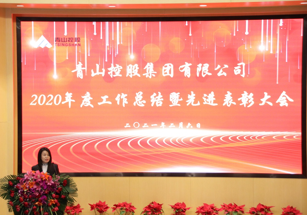 2月6日14時,青山控股集團有限公司2020年度工作總結暨先進表彰大會在青山總部大樓2樓報告廳順利召開。集團總裁孫建芬、各部門負責人、業(yè)務主管及2020年度先進集體代表、先進個人等近40人參加了會議。