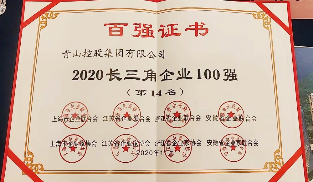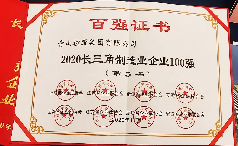 同時(shí),會(huì)上還公布了2020長三角百強(qiáng)企業(yè)、制造業(yè)百強(qiáng)企業(yè)、服務(wù)業(yè)百強(qiáng)企業(yè)名單,青山控股集團(tuán)有限公司分別位列2020長三角百強(qiáng)企業(yè)第14位,制造業(yè)百強(qiáng)企業(yè)第5位。2020長三角百強(qiáng)企業(yè)排名是以2019年企業(yè)營業(yè)總收入為入圍標(biāo)準(zhǔn),由上海市企業(yè)聯(lián)合會(huì)、上海市企業(yè)家協(xié)會(huì)、江蘇省企業(yè)聯(lián)合會(huì)、江蘇省企業(yè)家協(xié)會(huì)、浙江省企業(yè)聯(lián)合會(huì)、浙江省企業(yè)家協(xié)會(huì)、安徽省企業(yè)聯(lián)合會(huì)、安徽省企業(yè)家聯(lián)合會(huì)第二次向社會(huì)公開發(fā)布的長三角百強(qiáng)企業(yè)榜單。
