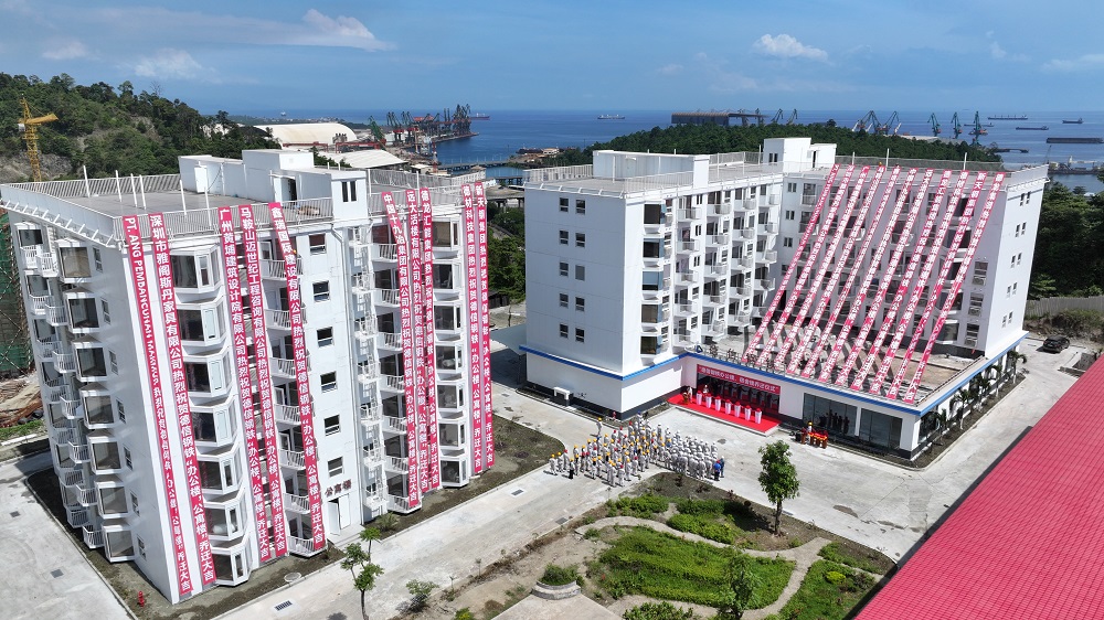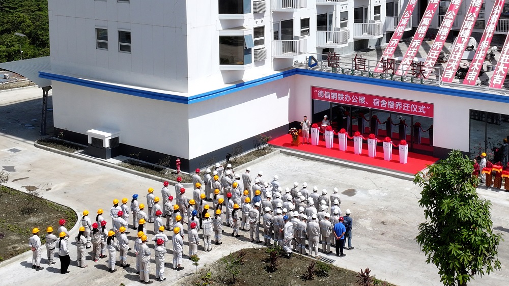 日前,位于印尼莫羅瓦利園區(qū)的德信鋼鐵有限公司舉辦喬遷儀式,首次將不銹鋼裝配式芯板建筑活樓引入東南亞。其辦公樓和員工公寓樓工程項(xiàng)目活樓單個(gè)安裝時(shí)間僅9—10天,德信辦公樓地上6層,建筑面積5079㎡ ,地下車庫(kù)面積1816㎡,樓內(nèi)設(shè)有132個(gè)開放辦公工位,并擁有中、高管辦公室,會(huì)議室、閱覽室、檔案室、展廳、管控中心等不同空間;公寓樓7層,建筑面積4375㎡,擁有單、雙人宿舍84間。辦公樓和公寓樓活樓100%采用青拓集團(tuán)有限公司自主研發(fā)的先進(jìn)高強(qiáng)不銹鋼QD2001和QN1804,這是青拓集團(tuán)與遠(yuǎn)大可建合作共贏的又一海外應(yīng)用案例。