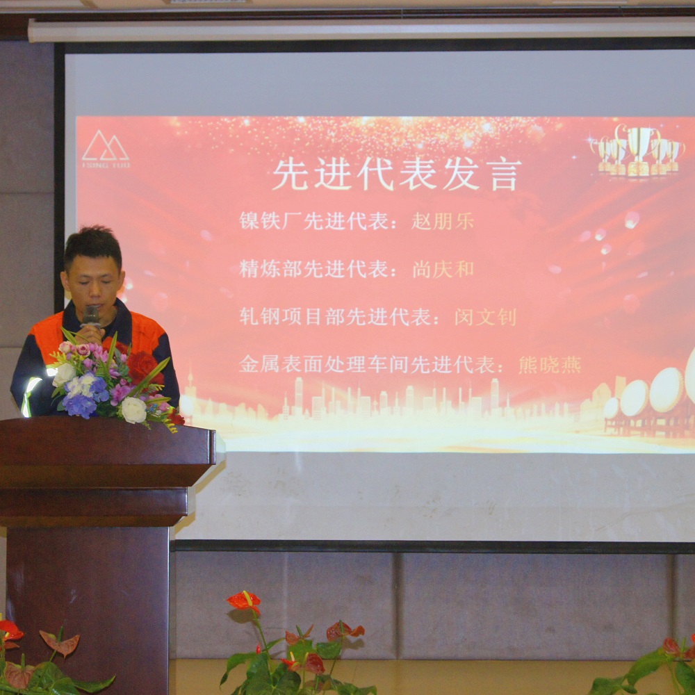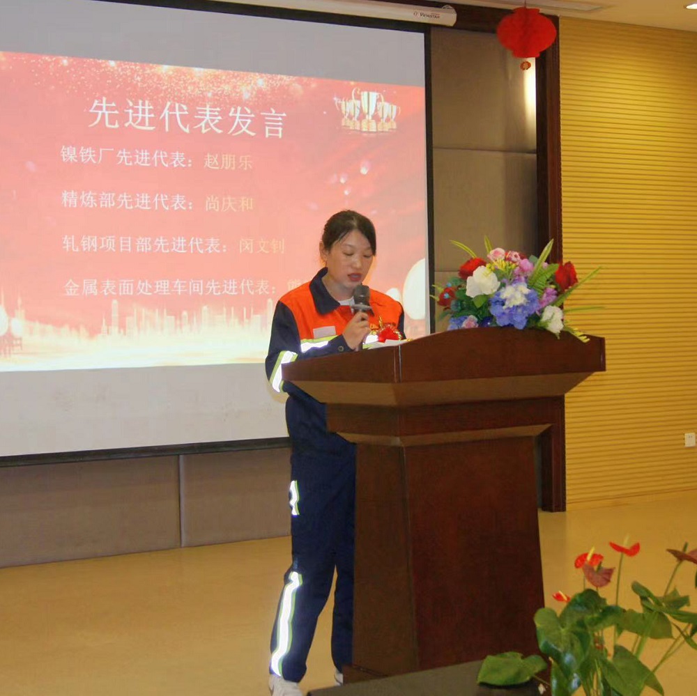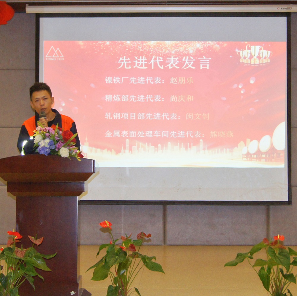 大會表彰了上半年各部門涌現(xiàn)的9位先進(jìn)管理者和83位先進(jìn)員工。鎳鐵廠趙朋樂、精煉部尚慶和、軋鋼項(xiàng)目部閔文釗及金屬表面處理車間熊曉燕4位先進(jìn)員工代表依次發(fā)言,他們結(jié)合自身實(shí)際,交流工作心得,紛紛表示會珍惜榮譽(yù)、再接再厲,充分發(fā)揮模范帶頭作用,為企業(yè)持續(xù)健康穩(wěn)定發(fā)展貢獻(xiàn)力量。