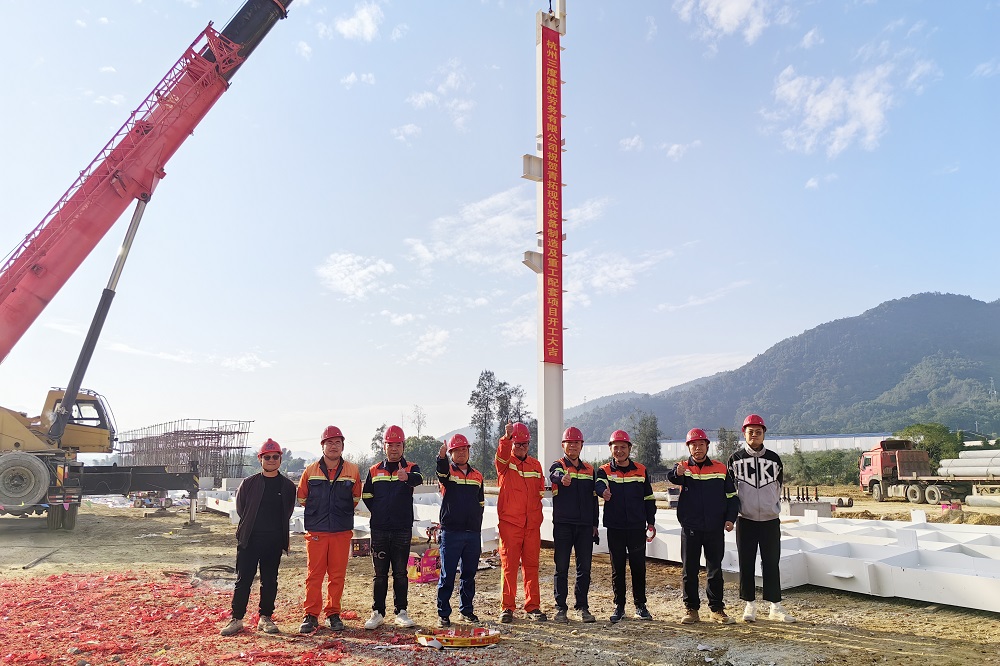 12月2日,陽光明媚、晴空萬里,福建青拓設備制造有限公司董事長丁朝輝、副總經(jīng)理楊元平帶領各部門領導及現(xiàn)場施工相關負責人,在溪尾鎮(zhèn)青拓現(xiàn)代裝備制造及重工配套項目施工現(xiàn)場參加鋼結構廠房首支立柱吊裝落位儀式。