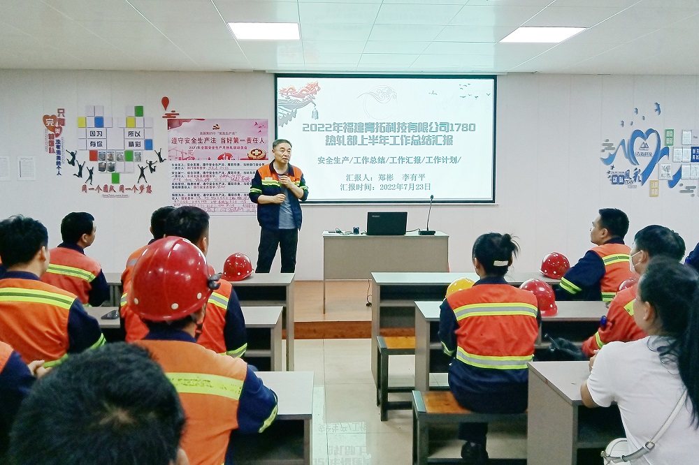 7月23日下午,福建青拓科技有限公司1780熱軋部組織召開(kāi)了2022年上半年安全生產(chǎn)總結(jié)暨下半年安全生產(chǎn)部署會(huì)議。本次會(huì)議客觀總結(jié)了熱軋部上半年的安全生產(chǎn)工作,剖析了當(dāng)前安全生產(chǎn)工作的形勢(shì),明確了下半年部門(mén)安全生產(chǎn)工作的重心和重點(diǎn)。部門(mén)領(lǐng)導(dǎo)、車間主任、安全員、班組長(zhǎng)共計(jì)60余人參加了會(huì)議。