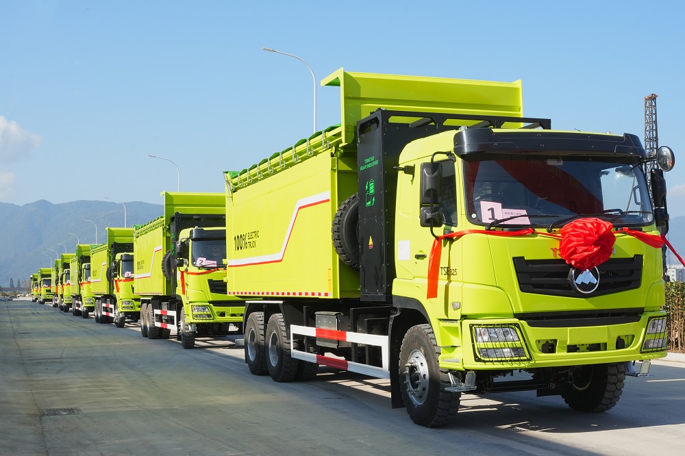 11月5日上午,首批新能源礦卡出口訂單發(fā)車儀式在福建青拓重工有限公司廠區(qū)內(nèi)舉行,10輛嵌有“青山”標識的純電動礦用運輸車一字排開,將從灣塢半島出發(fā),運往印尼青山工業(yè)園區(qū)。福安市委書記周祥祺,市委副書記、市長黃其山,寧德市工信局二級調研員黃仕華,福安經(jīng)濟開發(fā)區(qū)黨工委副書記、管委會常務副主任章斌杰,福安市人大常委會副主任郭躍光,青拓集團有限公司董事長姜海洪、總裁陳慶科,永青集團有限公司福建代表處總經(jīng)理陳紀亨,青拓重工總經(jīng)理鄭建新以及青拓集團直屬各部門、各子公司副總級以上領導出席活動。青拓集團行政部副總經(jīng)理劉永清主持活動。