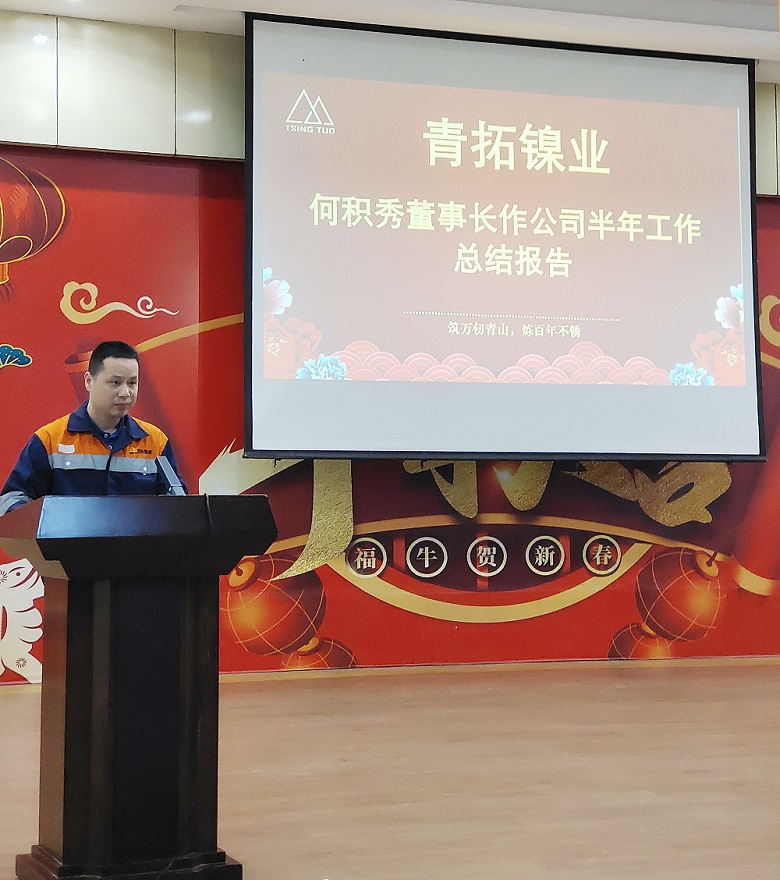 7月30日,福建青拓鎳業(yè)有限公司召開了上半年工作總結(jié)暨先進表彰大會。青拓鎳業(yè)董事長何積秀、總經(jīng)理李高榮、副總經(jīng)理邱忠賽及各生產(chǎn)部長、主任和先進員工共200余人參加大會。