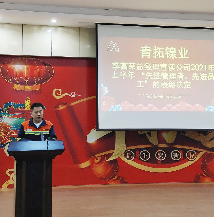 李高榮宣讀了上半年先進管理者、先進員工的表彰決定及先進名單。他向各先進管理者和先進員工表示衷心的感謝,號召公司全體員工向身邊榜樣學習。