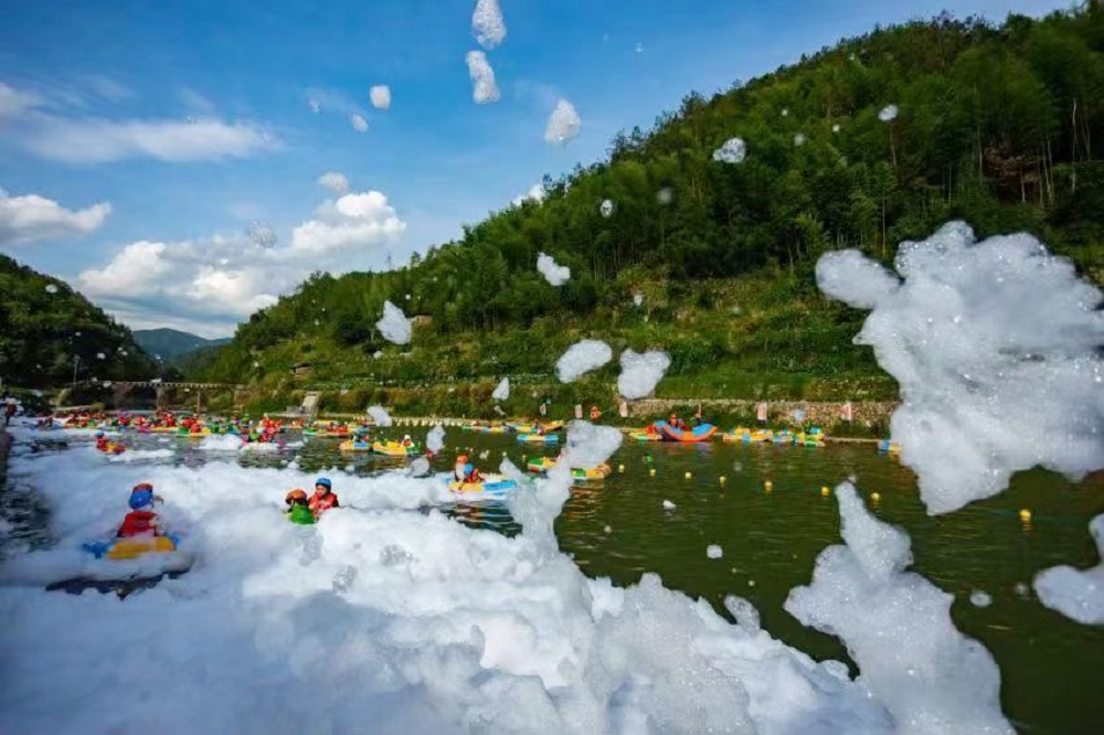 青山綠水與驚而不險(xiǎn)的漂流,動與靜的結(jié)合相得益彰。第二站大家直奔“消夏”主題——浙龍峽漂流景區(qū),體驗(yàn)高空玻璃漂流、超長峽谷河道漂流。山風(fēng)拂面、綠樹成蔭,在享受刺激漂流的同時(shí)感受大自然的寧靜與和諧,這種親近自然的體驗(yàn)讓大家的心情徹底得到了放松。