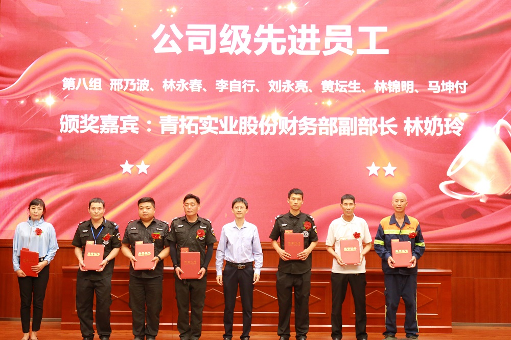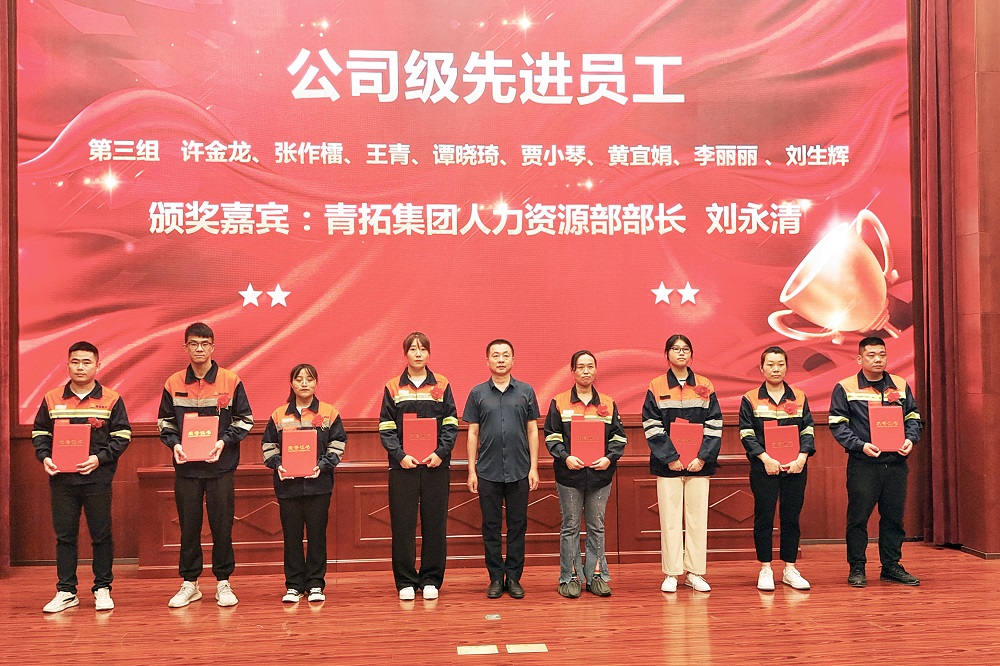 各位領導依次上臺為先進員工頒獎并合影留念,希望受到表彰的先進個人繼續(xù)保持謙虛謹慎、戒驕戒躁的精神,再接再厲,再創(chuàng)佳績,同時希望全體員工以先進為楷模,積極探索,勇于創(chuàng)新,扎實工作,埋頭苦干,不計得失,為青拓集團早日實現(xiàn)五年戰(zhàn)略目標而奮斗。