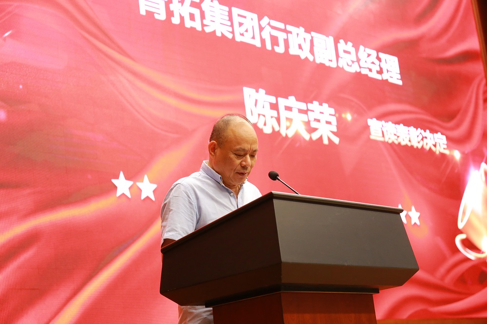 陳慶榮宣讀了2022年上半年公司級先進表彰決定、《青山報》先進部門通訊員及先進投稿人決定。