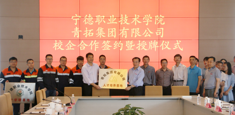 5月10日上午,青拓集團(tuán)有限公司與寧德職業(yè)技術(shù)學(xué)院舉行了校企合作簽約暨授牌儀式。青拓集團(tuán)行政經(jīng)理鐘盛江等12人,寧德職業(yè)技術(shù)學(xué)院校長(zhǎng)傅高升、副校長(zhǎng)林世平及相關(guān)專(zhuān)業(yè)教師等15人出席簽約儀式。