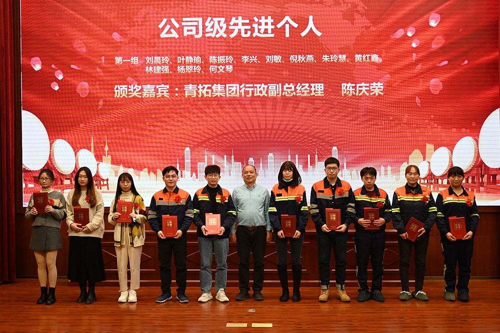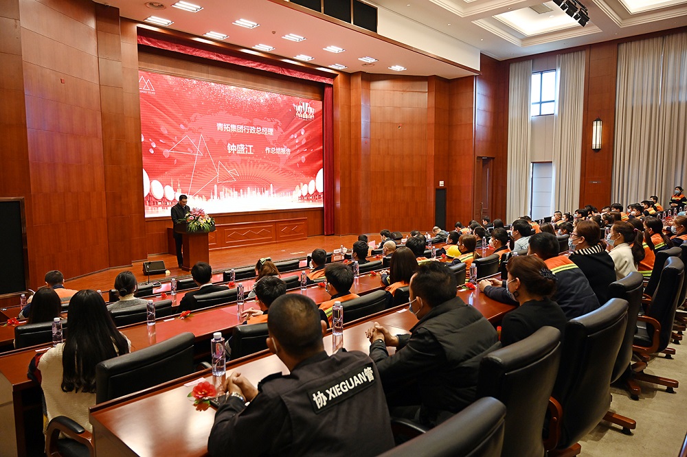 1月22日,青拓集團(tuán)有限公司2020年度總結(jié)暨公司級先進(jìn)表彰大會在報(bào)告廳順利召開,集團(tuán)行政總經(jīng)理鐘盛江、副總經(jīng)理陳慶榮,供銷中心副總經(jīng)理周健,集團(tuán)直屬相關(guān)部門部長及公司級先進(jìn)集體和個(gè)人共同參加大會。本次大會由集團(tuán)人力資源部部長劉永清主持。