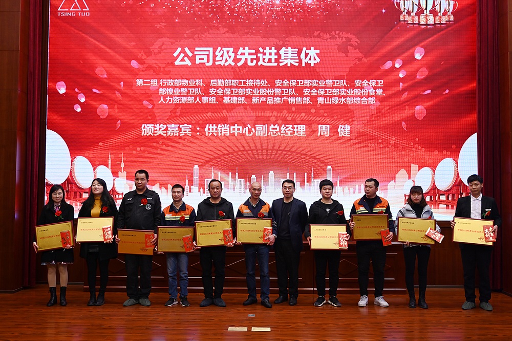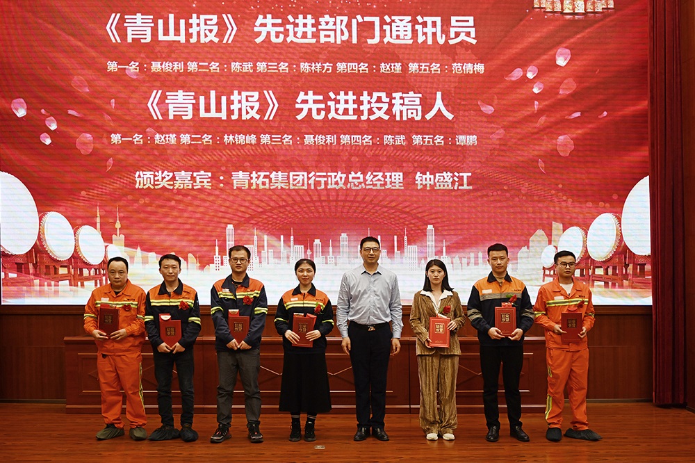 鐘盛江、周健、陳慶榮等領(lǐng)導(dǎo)分別為20個(gè)公司級先進(jìn)集體、58名公司級先進(jìn)個(gè)人、5名《青山報(bào)》先進(jìn)部門通訊員及5名先進(jìn)投稿人頒獎。