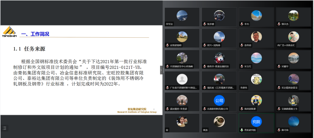 6月9日—10日,全國(guó)鋼標(biāo)準(zhǔn)化技術(shù)委員會(huì)鋼板及鋼帶分技術(shù)委員會(huì)通過網(wǎng)絡(luò)會(huì)議形式組織召開了《鉻-錳-鎳-氮系奧氏體不銹鋼冷軋鋼板和鋼帶》等四項(xiàng)行業(yè)標(biāo)準(zhǔn)審定會(huì)。青拓集團(tuán)研究院院長(zhǎng)江來珠、質(zhì)量管理部部長(zhǎng)石顯云等參會(huì),冶金信息標(biāo)準(zhǔn)研究院黨委書記、院長(zhǎng)張龍強(qiáng)在會(huì)上致辭并希望與會(huì)專家能夠集思廣益,對(duì)四項(xiàng)行業(yè)標(biāo)準(zhǔn)提出寶貴的意見,高質(zhì)量完成標(biāo)準(zhǔn)的制定工作。