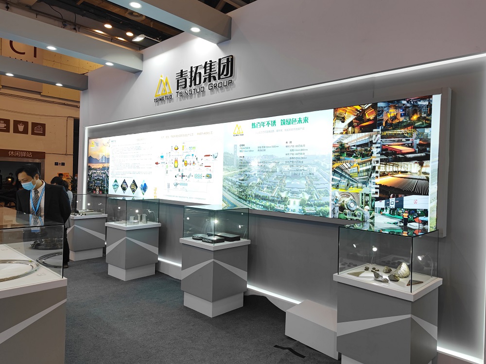 青拓集團(tuán)積極配合主辦方工作,展臺在展覽中心C1展館醒目位置,整體設(shè)計以綠色為主,展板展示企業(yè)主要發(fā)展歷程、全國布局以及全球領(lǐng)先的工藝,展品包括礦石、板坯、熱軋及冷軋產(chǎn)品,由青拓集團(tuán)研究院創(chuàng)新研發(fā)的QN系、筆尖鋼和手撕鋼等等,都與本次展會主題“低碳、智造、升級、賦能”相互呼應(yīng)、相得益彰。