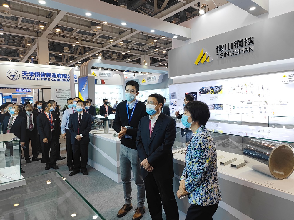 青拓集團(tuán)展臺吸引了大批嘉賓駐足圍觀。參加本次展會的相關(guān)領(lǐng)導(dǎo)也分批次來到青拓集團(tuán)展臺和工作人員交流,“煉百年不銹 筑綠色未來”的企業(yè)使命、“專注、開放、創(chuàng)新、合作”的青山理念、“敢為人先、廉潔敬業(yè)”的青山文化得到領(lǐng)導(dǎo)們的充分肯定。