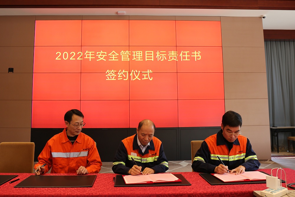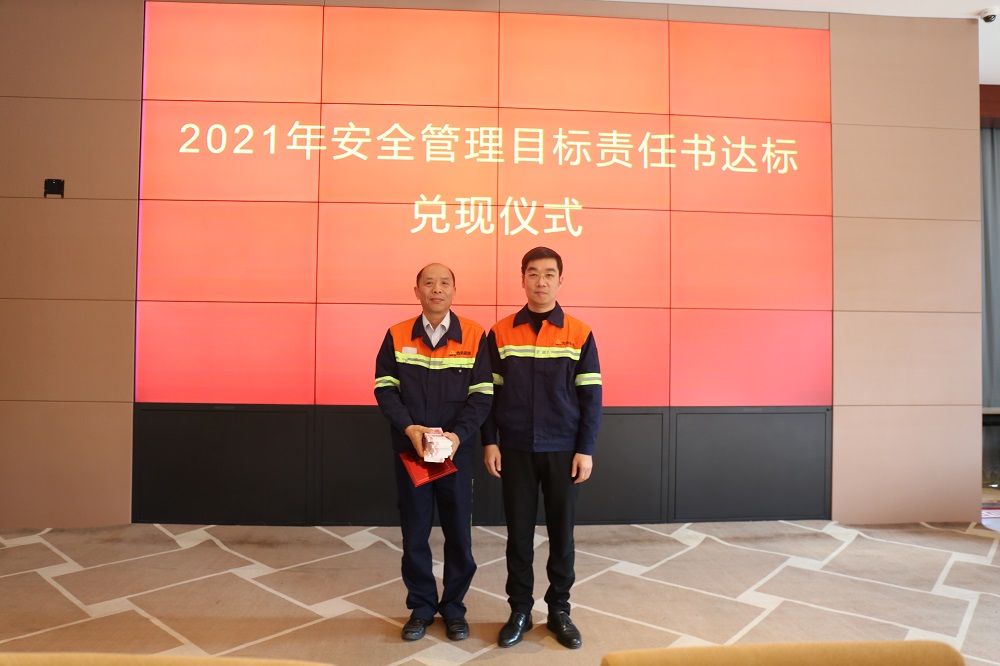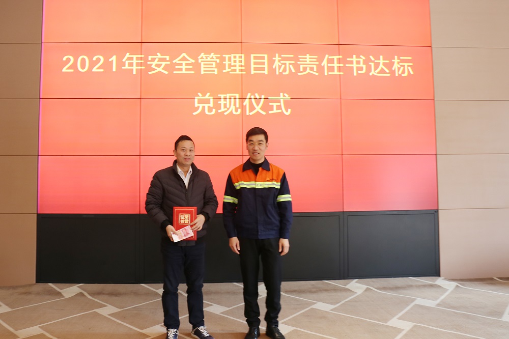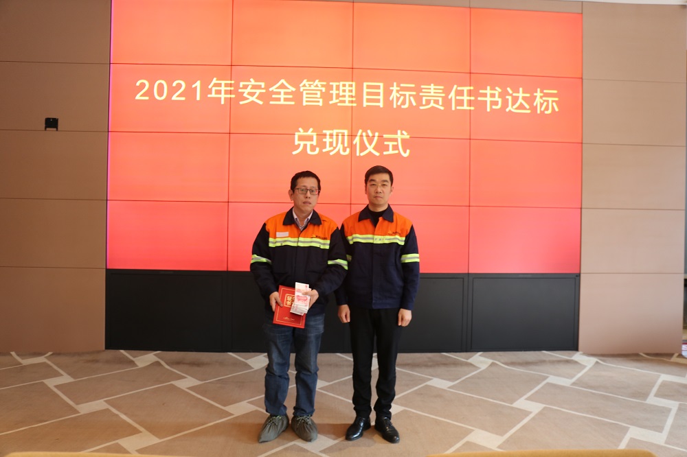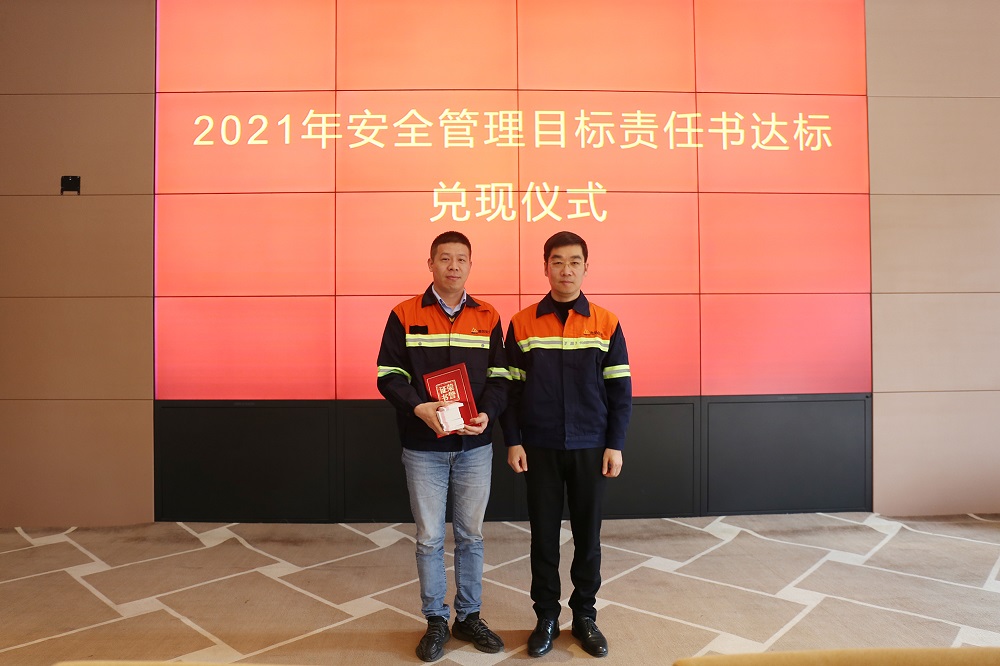 姜海洪為2021年度安全管理目標達標的9個單位進行了頒獎,并與集團直屬部門、各子公司簽訂了2022年安全管理目標責(zé)任書。