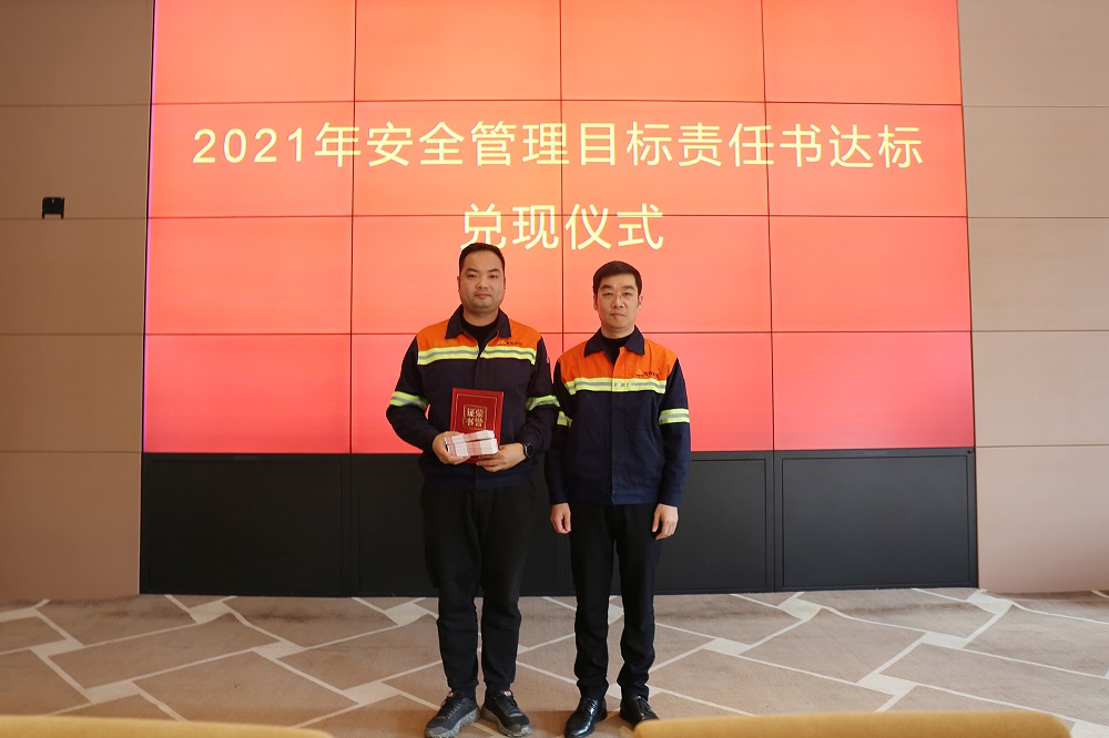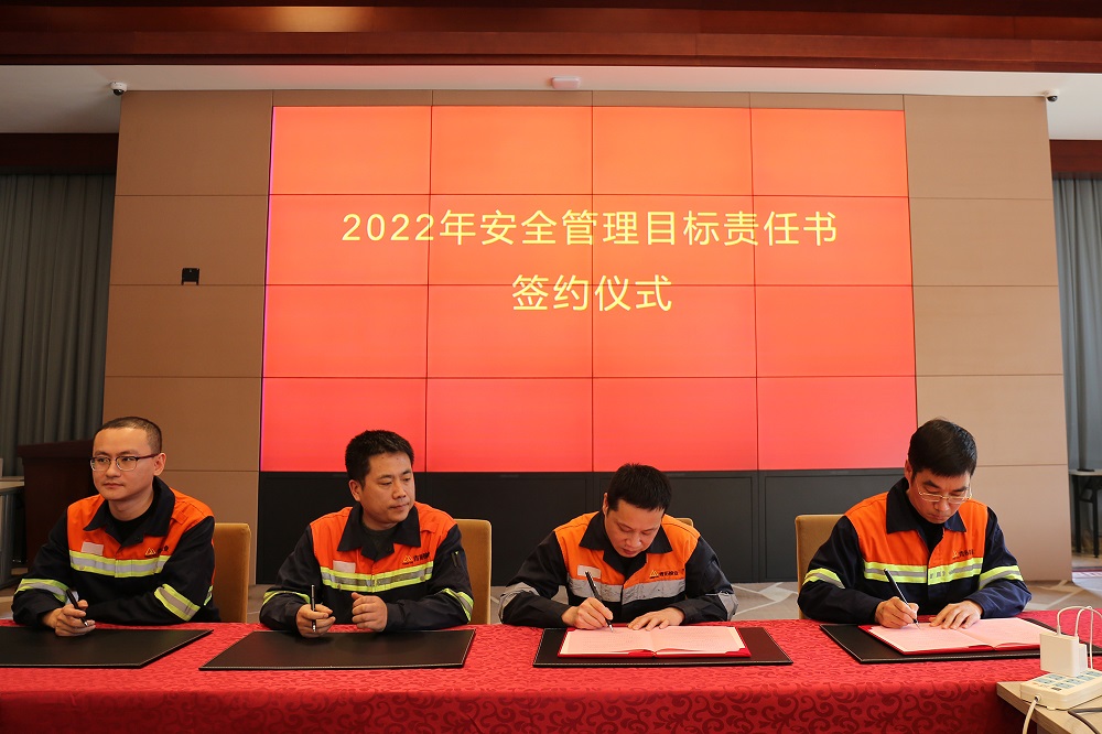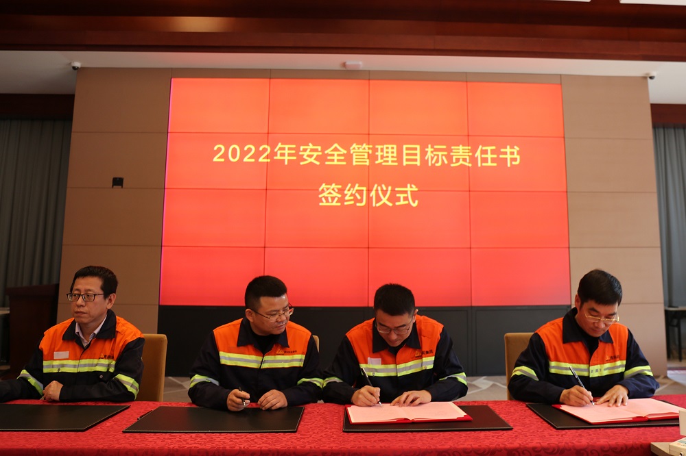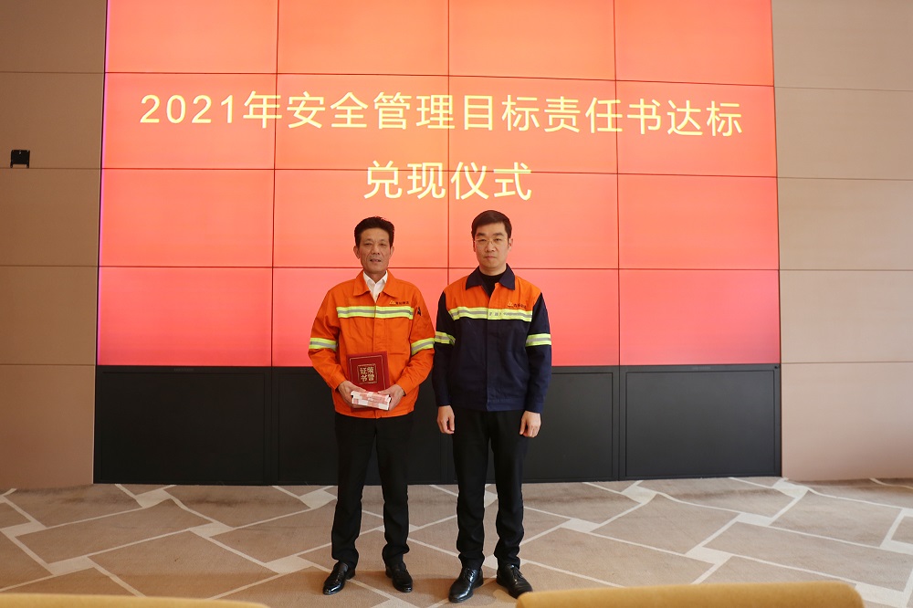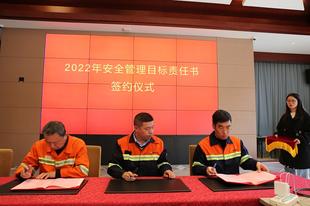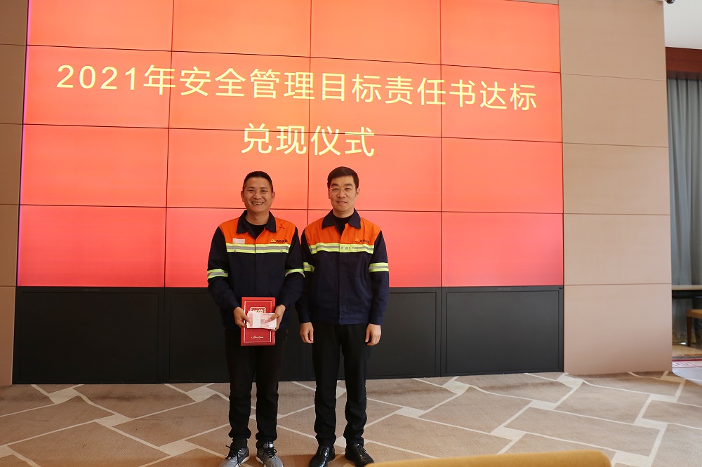 姜海洪為2021年度安全管理目標達標的9個單位進行了頒獎,并與集團直屬部門、各子公司簽訂了2022年安全管理目標責(zé)任書。