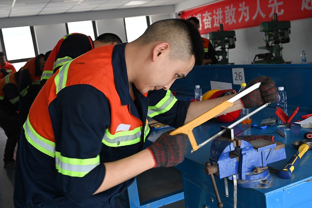 此次比賽共有453名職工參與裝載機、焊工、叉車、行車、中式烹調(diào)等九個項目的角逐,整個比賽環(huán)節(jié)分為筆試和實操兩個階段。在比賽中,各位參賽職工沉著冷靜、比學趕超,相互切磋,展現(xiàn)了新時代工人風貌。