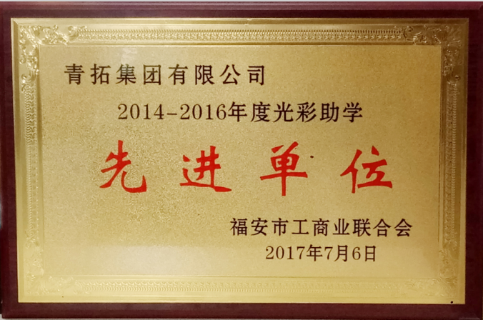 7月6日,福安市工商業(yè)聯(lián)合會(huì)授予青拓集團(tuán)有限公司“2014-2016年度光彩助學(xué)先進(jìn)單位”榮譽(yù)稱號(hào),表彰企業(yè)積極參與“光彩助學(xué)”公益活動(dòng),助力一批又一批的貧困學(xué)子走上求學(xué)之路,圓了大學(xué)夢(mèng),完成大學(xué)學(xué)業(yè),使他們感受到了社會(huì)的溫暖、人間的真情。