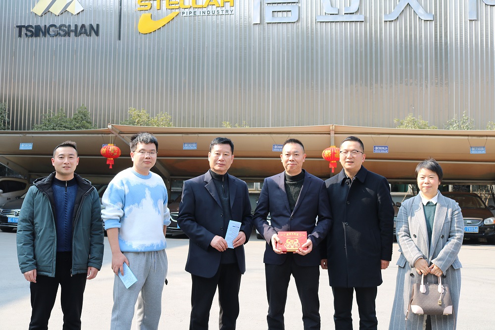 2月5日下午,青田縣經(jīng)濟(jì)商務(wù)局局長劉會(huì)榮、副局長吳海燕一行為浙江青山鋼管有限公司留青過年員工送來新春大禮包,在確保做好疫情防控工作的同時(shí),讓廣大員工度過一個(gè)溫馨、歡樂、祥和的新春佳節(jié)。