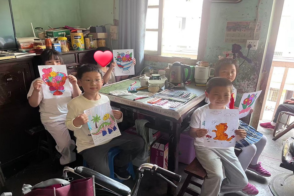 在上海浦東新區(qū)樂欣社工服務(wù)社工作人員的陪同下,志愿者分組慰問了此前由青山慈善基金會(huì)捐贈(zèng)人工耳蝸的小朋友一家以及智力障礙的小朋友。小志愿者們和小朋友一起玩耍、作畫,留下六一印記,志愿者們親切詢問了他們家庭情況、近期困難,鼓勵(lì)家長(zhǎng)積極面對(duì)生活、撫育孩子成人。志愿者代表鼎信集團(tuán)為他們送上了慰問品以及個(gè)人準(zhǔn)備的書籍、日用品等。