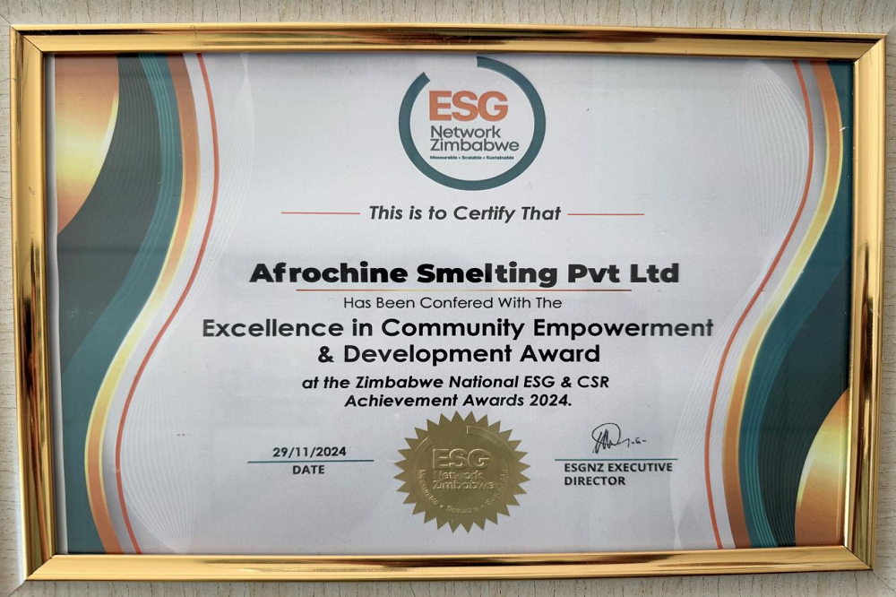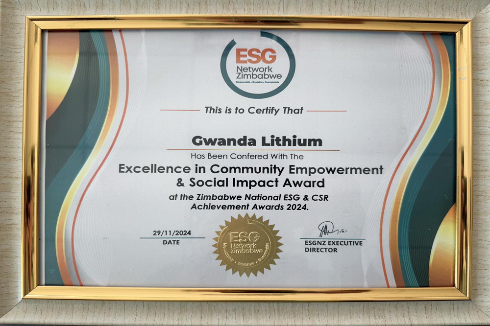 鼎森鋼鐵(私人)有限公司榮獲當天最大獎項——“聯(lián)合國可持續(xù)發(fā)展目標包容性發(fā)展的環(huán)境、社會與治理(ESG)獎”,此外還榮獲“環(huán)境管理與社會影響卓越獎”,中非冶煉(私人)有限公司榮獲“社區(qū)賦能與發(fā)展卓越獎”,鼎森煤業(yè)(私人)有限公司榮獲“社區(qū)賦能與社會影響卓越獎”,關(guān)達鋰業(yè)(私人)有限公司也同樣榮獲“社區(qū)賦能與社會影響卓越獎”。除此之外,公司兩位專門負責ESG事項的員工Pelagia Mutunzi(派拉·姆屯滋)和Pardon Kufakunesu(帕頓·庫發(fā)庫諾佐)也榮獲ESG管理工作優(yōu)秀高管獎。