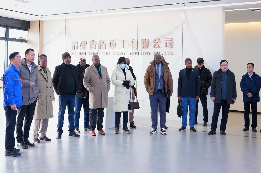 1月26日,鼎森鋼鐵(私人)有限公司董事長(zhǎng)許克敏攜津巴布韋能源部部長(zhǎng)Edgar Moyo(埃德加?莫約)和電力局主席Sydney Gata(悉尼?加塔)一行14人到訪(fǎng)青拓集團(tuán)有限公司,青拓重工總經(jīng)理鄭建新、青拓集團(tuán)行政部副總經(jīng)理劉永清給予熱情接待。
