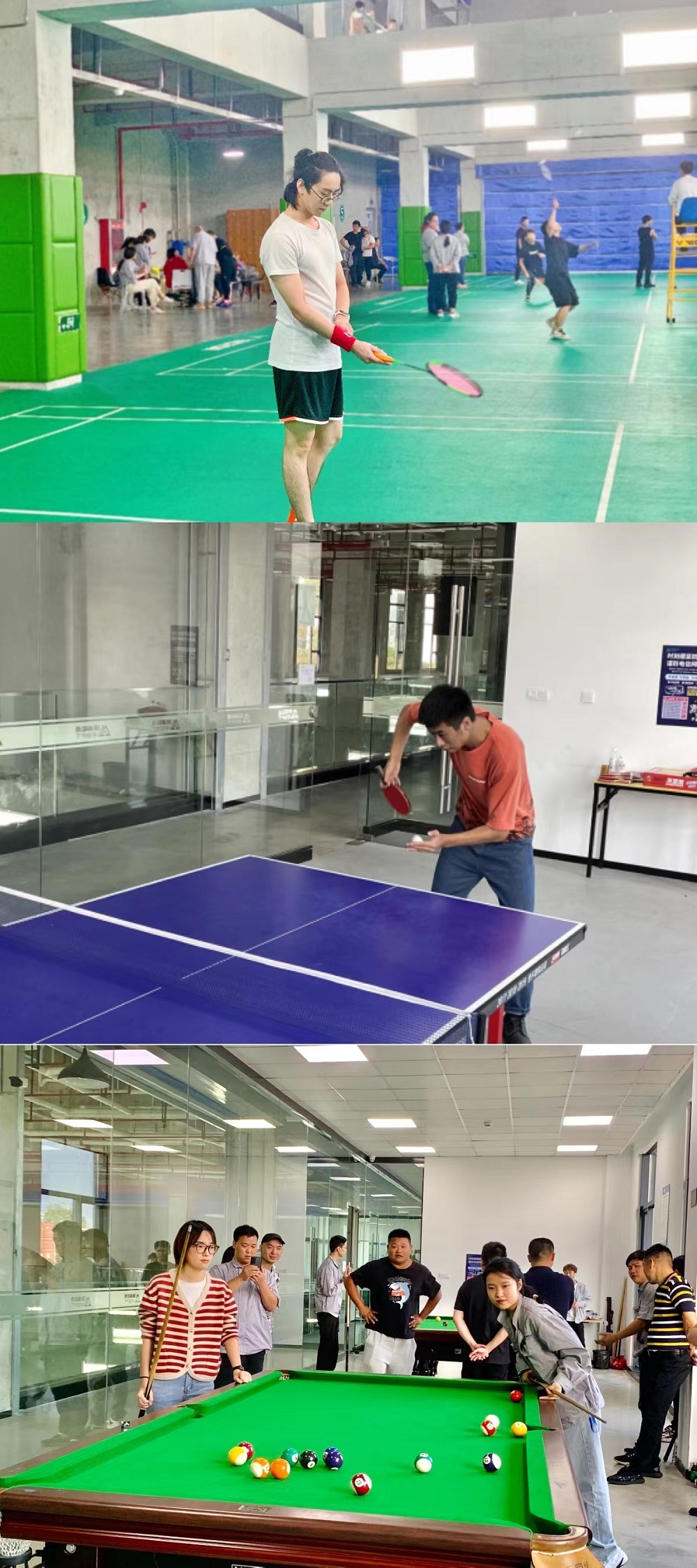 比賽中,運(yùn)動(dòng)健兒們勇敢無畏、活力無限。羽毛球賽場(chǎng)外吶喊聲和歡呼聲此起彼伏,非常熱鬧;臺(tái)球桌上選手屏氣凝神一桿進(jìn)洞;乒乓球賽場(chǎng)上直拍、橫拍、扣球、旋轉(zhuǎn)球、弧線球等精彩扣殺、絕妙回?fù)醪粩喑霈F(xiàn)。拔河是最后的壓軸項(xiàng)目,電芯裝配科一部勇奪第一名。