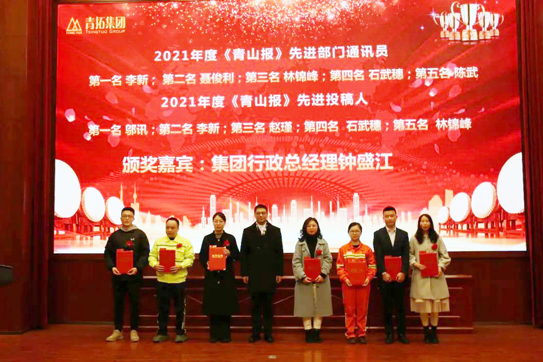 為表彰先進,樹立典型,1月21日下午,青拓集團有限公司在報告廳舉行了2021年度工作總結暨公司級先進表彰大會,對公司級先進集體、先進個人及《青山報》先進部門通訊員和先進投稿人進行了表彰。行政總經(jīng)理鐘盛江、供銷中心副總經(jīng)理周健、行政副總經(jīng)理兼安全保衛(wèi)部部長陳慶榮及集團各部門部長參加此次大會。