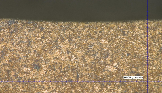 能確保表層附近約800HV的高硬度、整體硬化層深度約0.9mm左右。