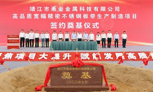 7月25日10時18分,靖江市甬金金屬科技有限公司高品質寬幅精密不銹鋼板帶生產制造項目簽約奠基儀式在甬金項…