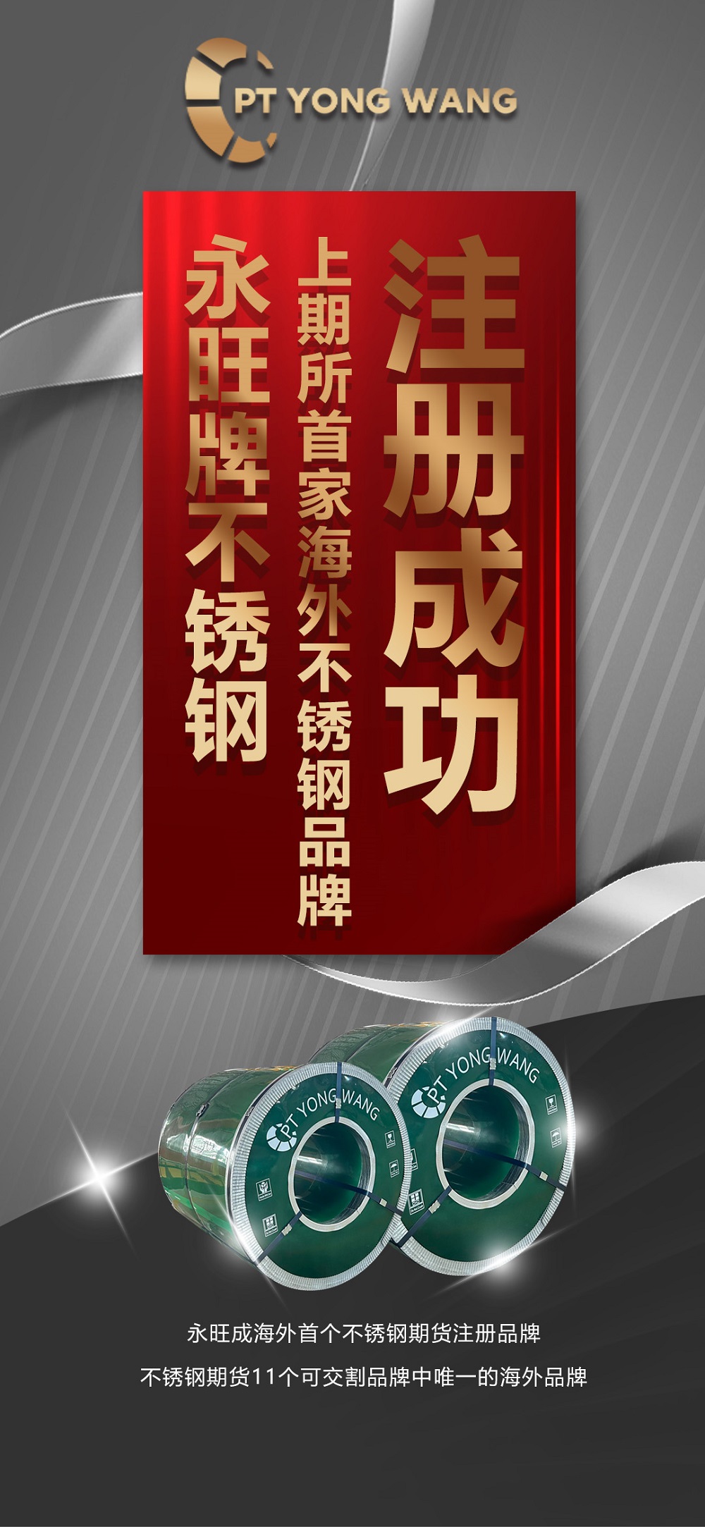 “YONG WANG”牌不銹鋼是上期所首家海外冷軋交割品牌,此次注冊(cè)成功是對(duì)印尼永旺不斷優(yōu)化內(nèi)部質(zhì)量管理體系、全面提升產(chǎn)品質(zhì)量的充分肯定,將進(jìn)一步提升“YONG WANG”牌不銹鋼的市場(chǎng)流通性、品牌價(jià)值及品牌知名度。